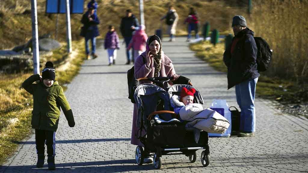 FUGA Com estradas congestionadas e falta de combustível, ucranianos deixam o país a pé (Crédito:Bryan Woolston)