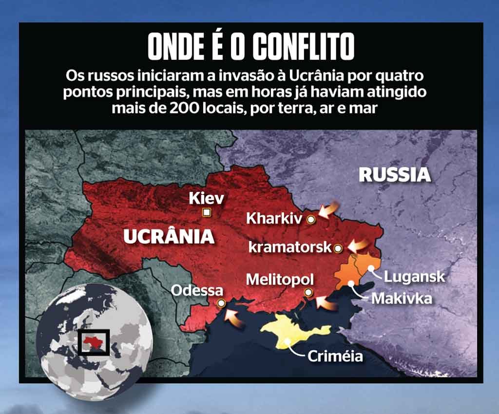 Trata-se da mais grave crise militar da Europa desde a Segunda Guerra Mundial e suas consequências são imprevisíveis. As bolsas de todo o mundo despencaram refletindo um grande pessimismo. O motivo do conflito é que a Rússia não admite a adesão da Ucrânia à Organização do Tratado do Atlântico Norte (Otan), por considerá-la parte integral do seu território. Putin quer “desmilitarizar” e “desnazificar” o País e tirá-lo da esfera de influência do Ocidente. Nas últimas horas, foram mais de 30 bombardeios direcionados para equipamentos de infraestrutura civil e militar e pelo menos 50 mortes contabilizadas. O presidente ucraniano, Volodimir Zelenski, promete resistir a qualquer custo, contando com uma imediata ajuda ocidental e disse que “o país não vai entregar sua liberdade”. A assimetria entre as forças de guerra da Rússia e da Ucrânia é notável. A Rússia conta com 2,9 milhões de soldados, 900 mil na ativa, e a Ucrânia, com 1,1 milhão, sendo cerca de 200 mil prontos para o combate. A capacidade armamentista também é desproporcional. Além do maior poderio nuclear do planeta, Putin tem à disposição 12 mil tanques, 30 mil blindados e 2,5 mil aeronaves de ataque, enquanto Zelenski conta com 2,5 mil tanques, 12 mil blindados e 132 aeronaves.
