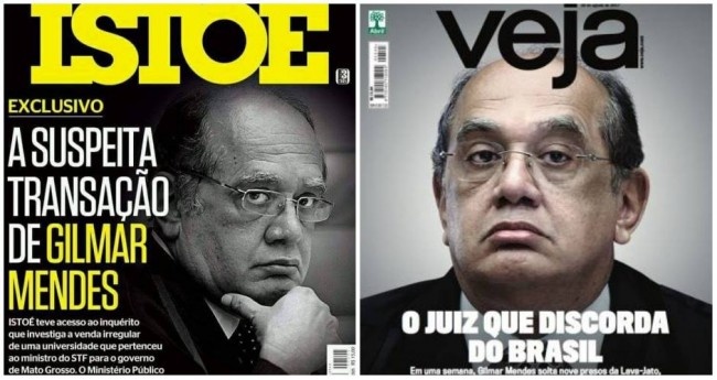 O ilustre magistrado mato-grossense Gilmar Mendes conseguiu a proeza de ser acusado por diferentes safadezas e imoralidades em duas revistas semanais de grande circulação: uma matéria de sete páginas, com chamada de capa, em VEJA; e matéria de capa da Revista ISTOÉ.