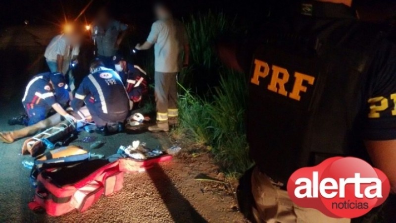 Ao ser acionada, a equipe da PRF foi ao local e constatou o fato, dois homens estavam ao solo vitimas de uma colisão traseira entre um veículo Palio e uma motoneta Honda Pop.