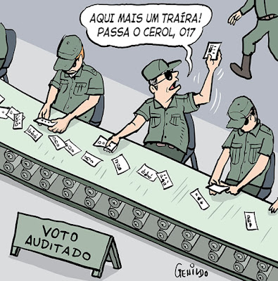 Por causa disso, defende o voto impresso e alega não ser possível eleição apenas com urnas eletrônicas. É neste diapasão que o General de pijamas e atual ministro da defesa, Braga Neto, mandou ameaça direta ao presidente da Câmara, Arthur Lira, determinando a eleição por voto impresso ou eleição nenhuma.