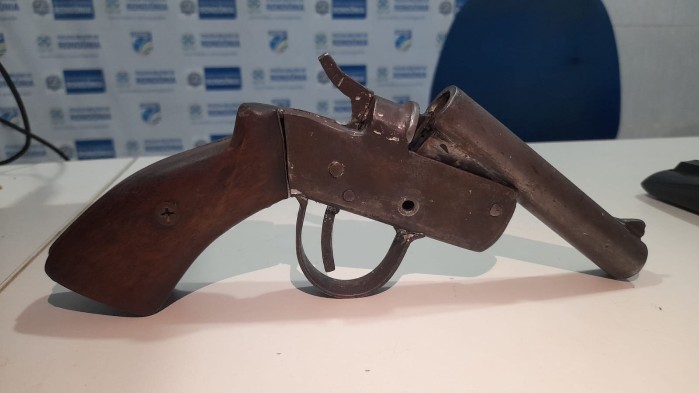 Policiais estavam em patrulhamento, quando observaram a dupla em uma bicicleta e fizeram a abordagem. Um dos adolescentes afirmou que estava armado, situação confirmada após revista pessoal. Com ele a Polícia encontrou uma arma de fabricação caseira.