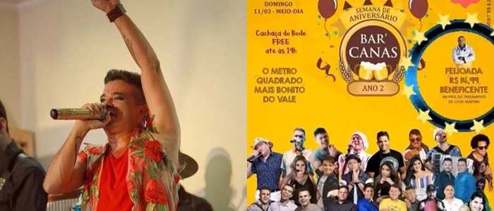 Além de um grande profissional, o artista Alan Cleber é também um grande ser humano. Partícipe de inúmeras campanhas, o cantor que também navega pelas artes cênicas (ator e diretor), resolveu incorporar mais um evento beneficente e como anfitrião recebe neste domingo, dia 11, no Bar’ Canas uma série de artistas na feijoada beneficente em favor do jovem Lucas Martins, 27 anos, que está em tratamento contra um câncer no quadril.