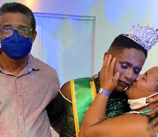 Aos prantos, jovem recebe carinho dos pais e comemora título de Miss Acre Gay