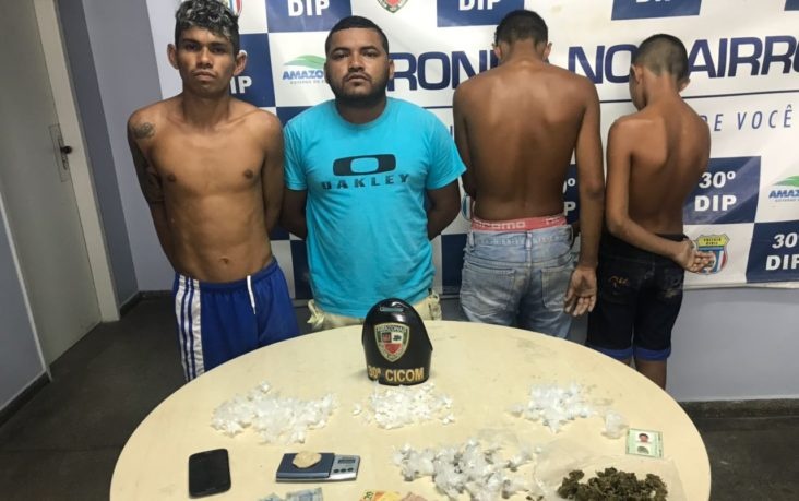 O quarteto foi preso após populares denunciarem que na rua Melhoral, conjunto João Paulo, zona Leste de Manaus, estariam comercializando e embalando drogas dentro de uma residência. Ao chegar no local foi constatado a denúncia e com os presos foram encontrados;