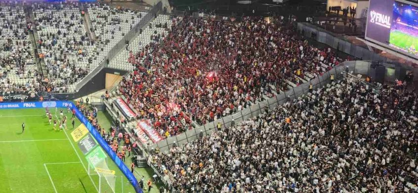O árbitro Bráulio da Silva Machado relatou na súmula da decisão da Copa do Brasil a confusão entre torcedores de Flamengo e Corinthians. Na ocasião, um rubro-negro arremessou uma bomba de pequeno porta contra os alvinegros no setor sul da Neo Química Arena.