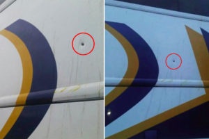 Essas autoridades dizem que, quando um veículo é atingido em movimento, a marca da bala deixa um aspecto de rasgo ou "respingo". No entanto, as marcas mostradas são redondinhas. E os tiros parecem ter sido disparados de perto, porque o buraco é do mesmo diâmetro da bala. Quando é de longe, o buraco é mais largo, em razão da expansão da energia.