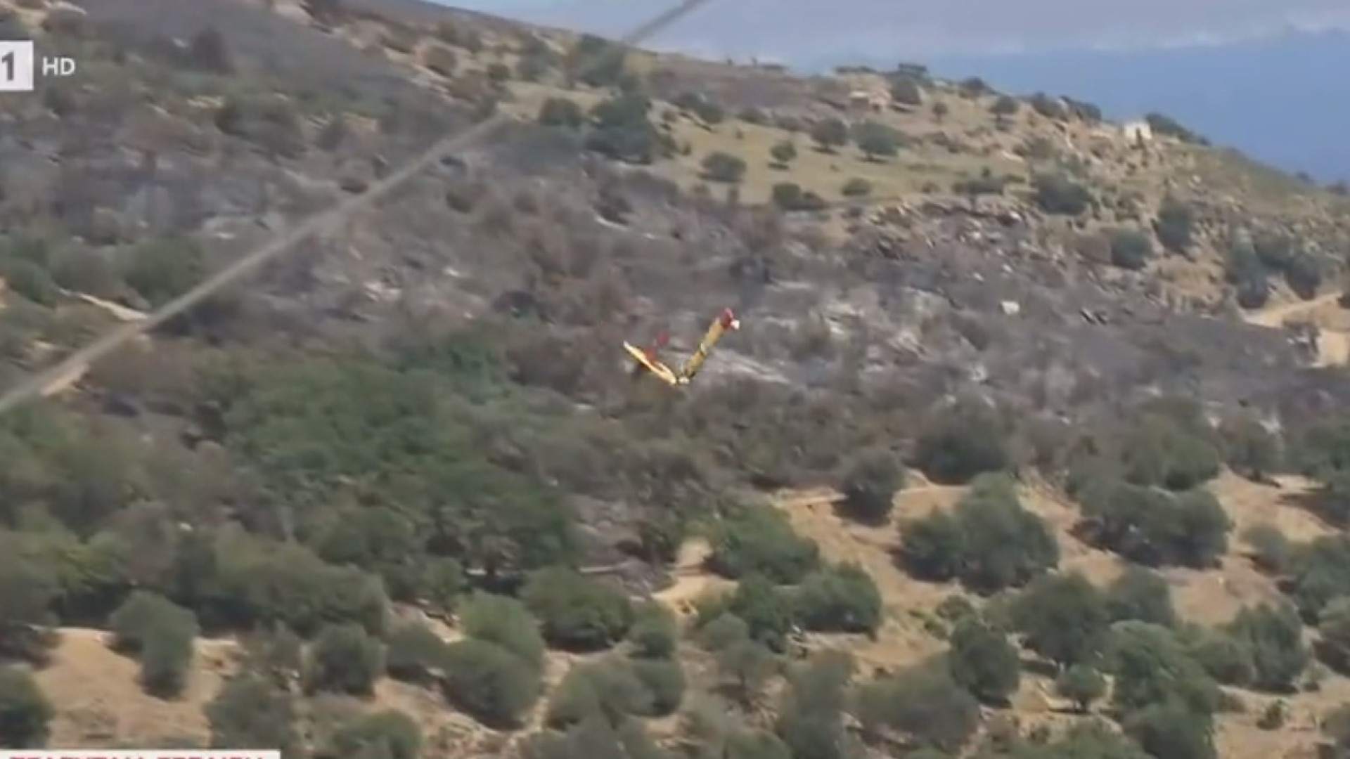 A aeronave caiu quando combatia o grande incêndio que lavra em Karystos.