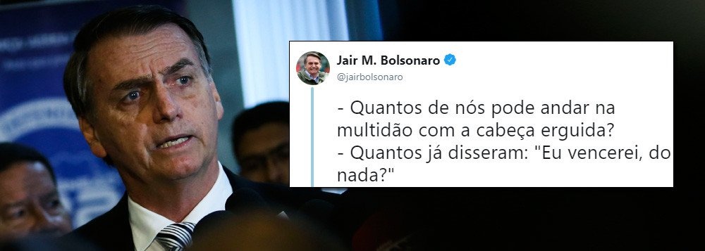 247 – O presidente Jair Bolsonaro também tem dificuldades com a língua portuguesa. É o que aponta tweet da noite de ontem, em que ele questiona "quantos de nós pode", em vez de podem. "Quantos de nós pode andar na multidão com a cabeça erguida? Quantos já disseram: 'Eu vencerei, do nada?'", postou o presidente, sobre o vídeo de um personagem chamado Roger Oliveira, que teria vencido dificuldades em sua caminhada. Mais tarde, Bolsonaro também disse que gostaria de conhecê-lo.