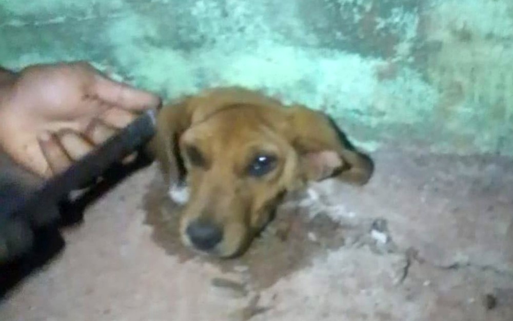 Bombeiros resgatam cachorro que ficou preso dentro de cano