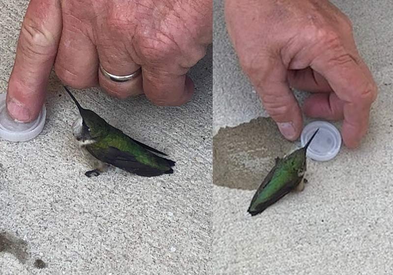 Bombeiros salvam beija-flor desidratado que caiu na calçada