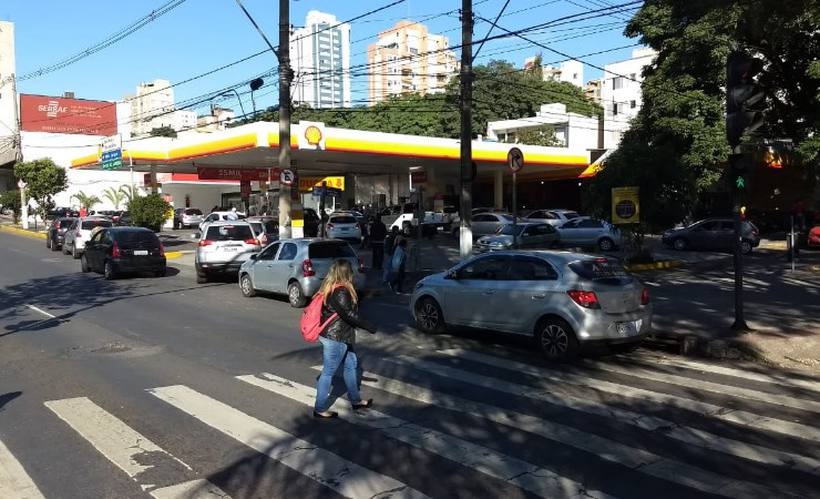 Na av. Nossa Senhora do Carmo, no Bairro São Pedro, pelo menos 100 metros da pista da direita foram tomados por carros à espera da vez, bloqueando a faixa de pedestres - o que pode ser punido com multa segundo a BHTrans. Os dois acessos ao posto estão bloqueados.
