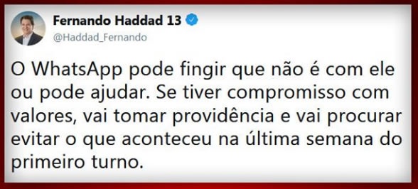 E não foi só o PSOL que pediu a censura … a campanha de Fernando Haddad também encaminhou um pedido ao TSE.