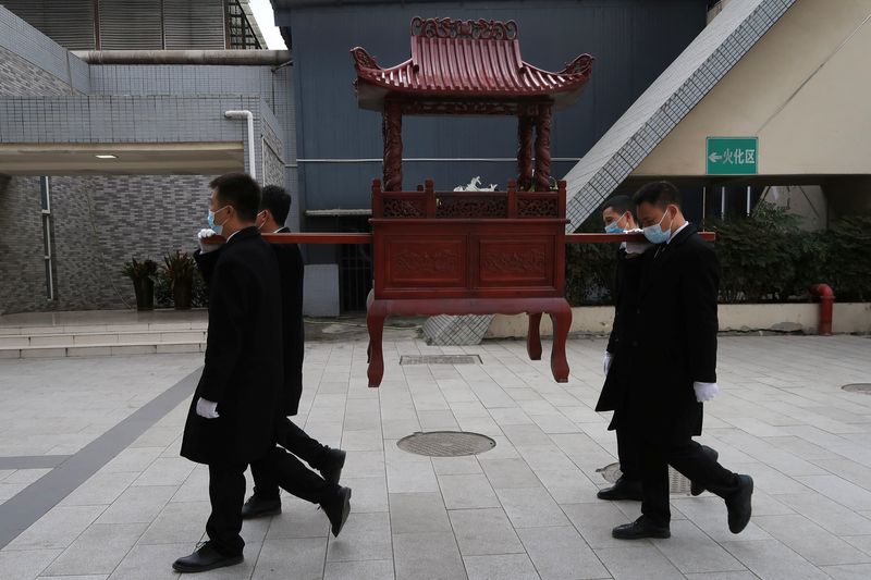 Na cidade de Chengdu, no sudoeste do país, as funerárias estavam lotadas até tarde da noite de quarta-feira, com um fluxo constante de carros entrando em uma delas fortemente vigiada por seguranças.