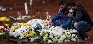 Familiares de mulher que morreu vítima da Covid-19 choram durante enterro em cemitério Vila Formosa, em São Paulo (Foto: REUTERS/Amanda Perobelli)