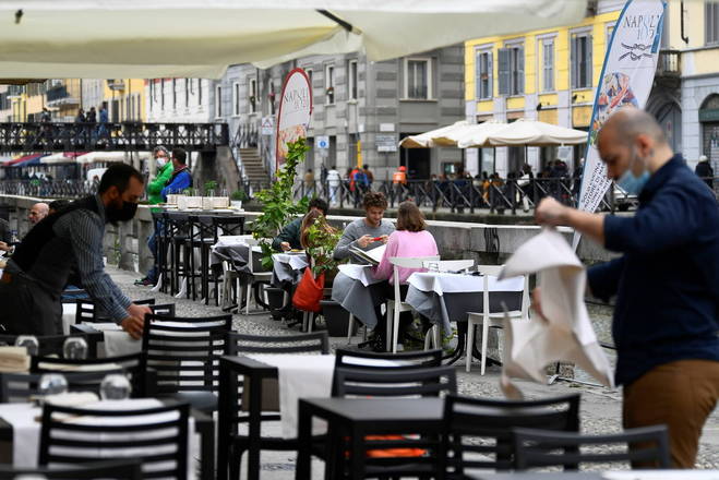 Com casos e mortes em queda, a Itália iniciou nesta segunda-feira (26) uma nova fase no combate à pandemia de covid-19 com a reabertura de restaurantes e bares com espaços ao ar livre, inclusive de noite, e museus, cinemas e teatros na maior parte do país