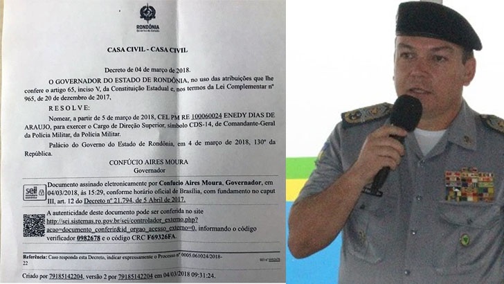 Já no Comando Geral da PM, o governador retornou o coronel Ênedy Dias de Araújo ao comando da corporação, destituindo o coronel PM Mauro Ronaldo Flôres Corrêa, que tinha sido nomeado no último dia 28.