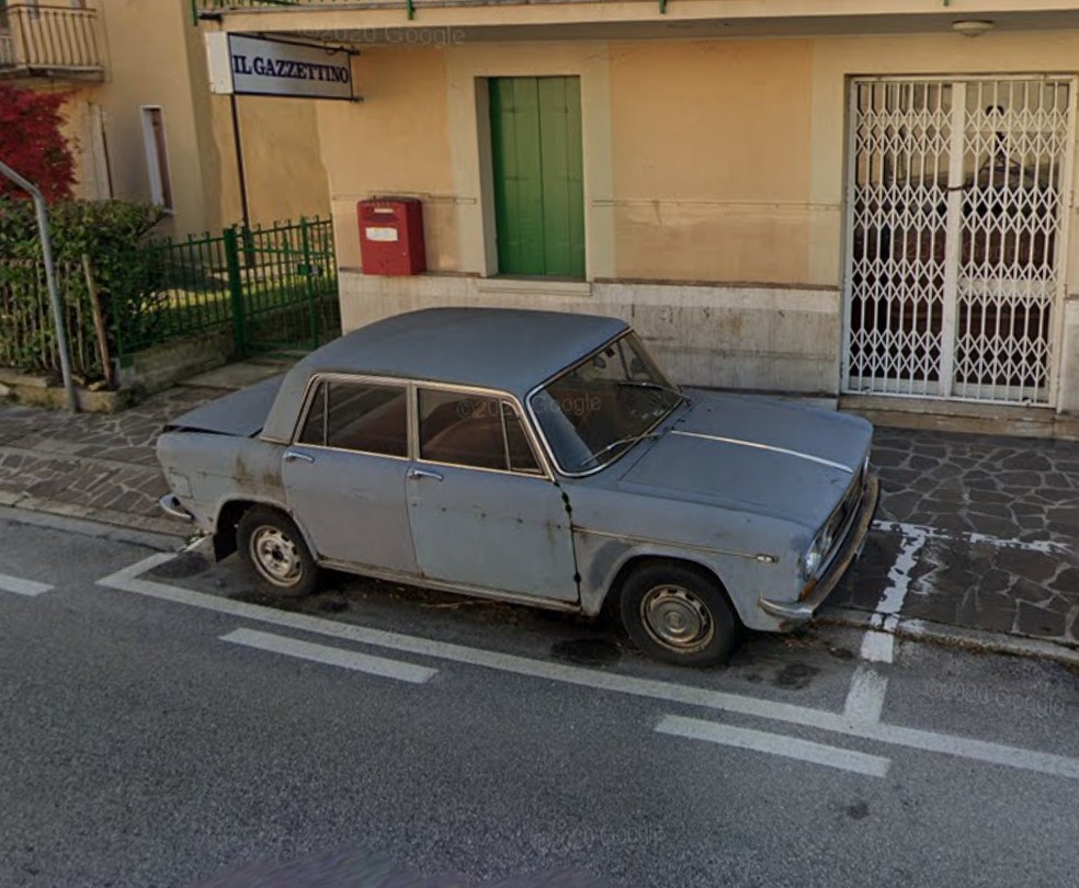 Carro estava estacionado em uma rua de cidade italiana desde 1974 — Foto: Reprodução/Google maps