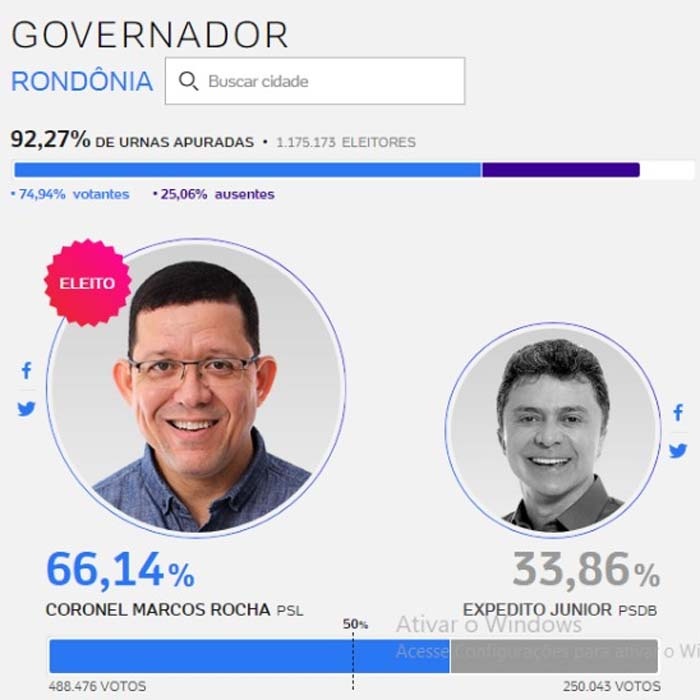 Porto Velho, RO – O Coronel Marcos Rocha, do PSL, é o novo governador do Estado de Rondônia. O militar surpreendeu no primeiro turno das eleições quando chegou em segundo lugar contrariando todas as pesquisas de opinião até ali.