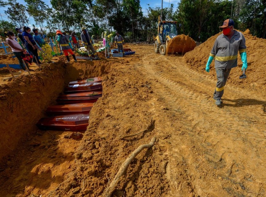 O Brasil tem 818 mortes por covid-19 a cada milhão de habitantes. Está na 10ª posição do ranking mundial, junto com o México.
