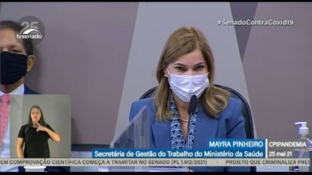 O relator da CPI do Genocídio, senador Renan Calheiros (MDB-AL) e a equipe de checagem rápida organizada pela comissão, apontaram, ao menos, 11 mentiras da secretária de Gestão do Trabalho e da Educação do Ministério da Saúde, Mayra Pinheiro, a “Capitã Cloroquina”, em depoimento nesta terça-feira (25), de acordo com informações da coluna de Mônica Bergamo, na Folha de S.Paulo.