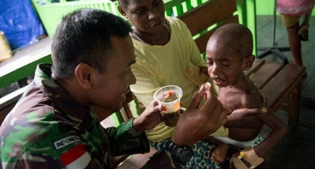 Conforme as notícias sobre a epidemia de sarampo se espalharam, o presidente Joko Widodo enviou tropas militares e equipes médicas para levar mantimentos e dar suporte às vítimas nas vilas remotas.