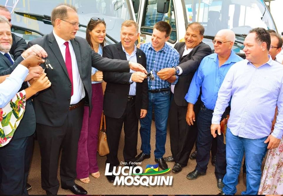 Em solenidade no Palácio do Governo, Dep Lucio Mosquini entrega 22 micro-ônibus para prefeituras O Deputado Federal Lucio Mosquini realizou a entrega de 22 micro-ônibus, nesta sexta-feira (30), ao lado do governador Daniel Pereira, do Secretário Nacional de Assistência Social Antônio Henriques, e vários prefeitos, vereadores e outras autoridades da região. A solenidade foi realizada no estacionamento Pirarucu do Palácio Rio Madeira.