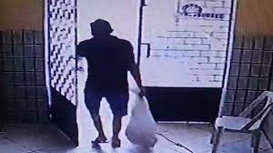 No vídeo obtido pela Polícia Civil de Fortaleza, registrado pelas câmeras de segurança da escola, é possível ver o momento em que o homem carrega os alimentos em sacolas plásticas para fora da escola.