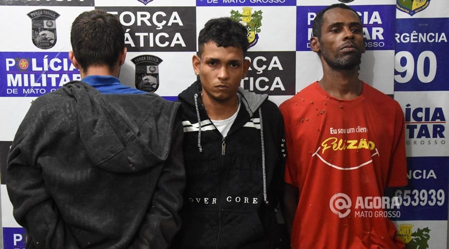 Wenderson Marinho dos Santos, 18 anos, José Aparecido Garcia, 42 anos e M.A.F.L. 17 anos, foram detidos em flagrante por policiais da 14ª Companhia Independente de Polícia Militar da Força Tática (CIPM), ao realizar um roubo em uma residência, na noite desta segunda-feira (23), no bairro Monte Líbano, em Rondonópolis.