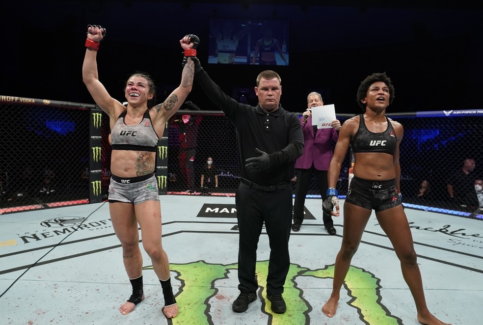 Cláudia Gadelha venceu Angela Hill por decisão dividida (29-28, 28-29 e 29-28)
