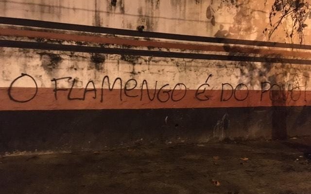 Em protesto contra venda de jogo, muros da Gávea amanhecem pichados neste sábado: “Flamengo é do povo”