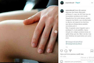 Através de um perfil “fake” no Instagram, uma das possíveis vítimas, de 12 anos, compartilhou frases que eram ditas pelo professor. As colegas que se identificaram com o conteúdo começaram a relatar o que haviam sofrido.