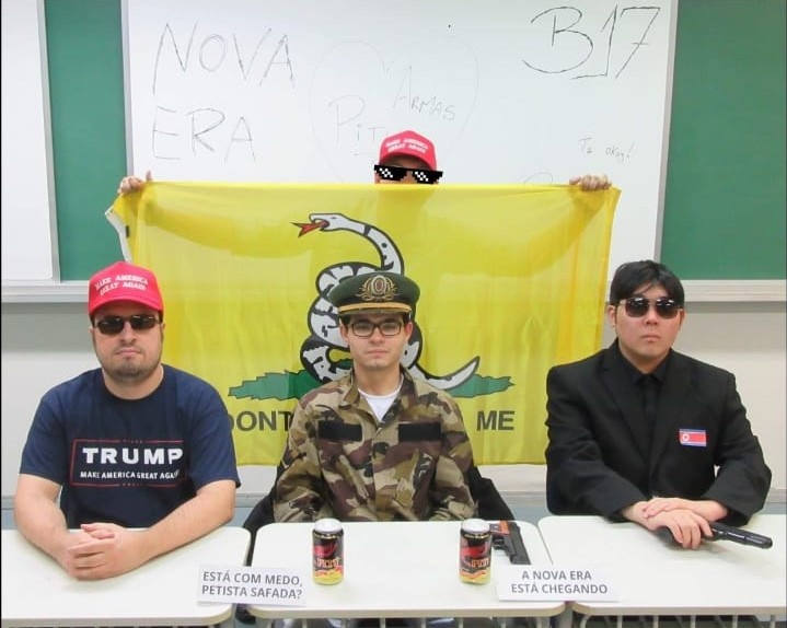 Estimulados pelo clima político atual e pela vitória de Jair Bolsonaro (PSL) nas eleições presidenciais, um grupo de alunos da Faculdade de Economia, Administração e Contabilidade da Universidade de São Paulo (FEA-USP) ingressou nas dependências da instituição armado. Estavam vestidos com roupa militar e camisetas em que se lia Trump, fotografaram salas de aula, fizeram uma espécie de performance, anunciando a chegada da “nova era” e fazendo ameaças: “As petistas safadas vão ter de tomar cuidado”.