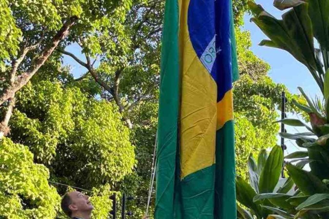 Bandeira do Brasil é hasteada no jardim da Embaixada da Argentina, em Caracas - (crédito: X/Reprodução)