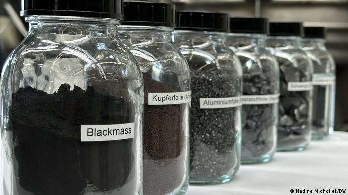 Apostando em veículos elétricos na luta contra as mudanças climáticas, bloco tem no reaproveitamento um meio de se livrar de dependência das matérias-primas importadas da China e de tornar esses itens mais sustentáveis.Um recipiente de vidro cheio de pó preto de granulação fina que desliza pelas paredes do frasco e brilha à luz da fábrica. No rótulo do frasco está escrito blackmass, ou massa negra. Soa um pouco misterioso. O pó contém metais valiosos, como lítio, níquel e cobalto, que são extraídos de baterias de veículos elétricos trituradas.