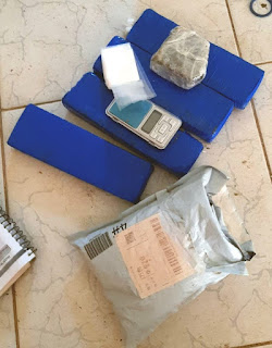 Durante a realização das buscas foram encontrados diversos objetos que caracterizam a manipulação e refino de droga, tais como: balança de precisão, seringas, substâncias químicas e até uma prensa profissional para embalar o produto ilícito.