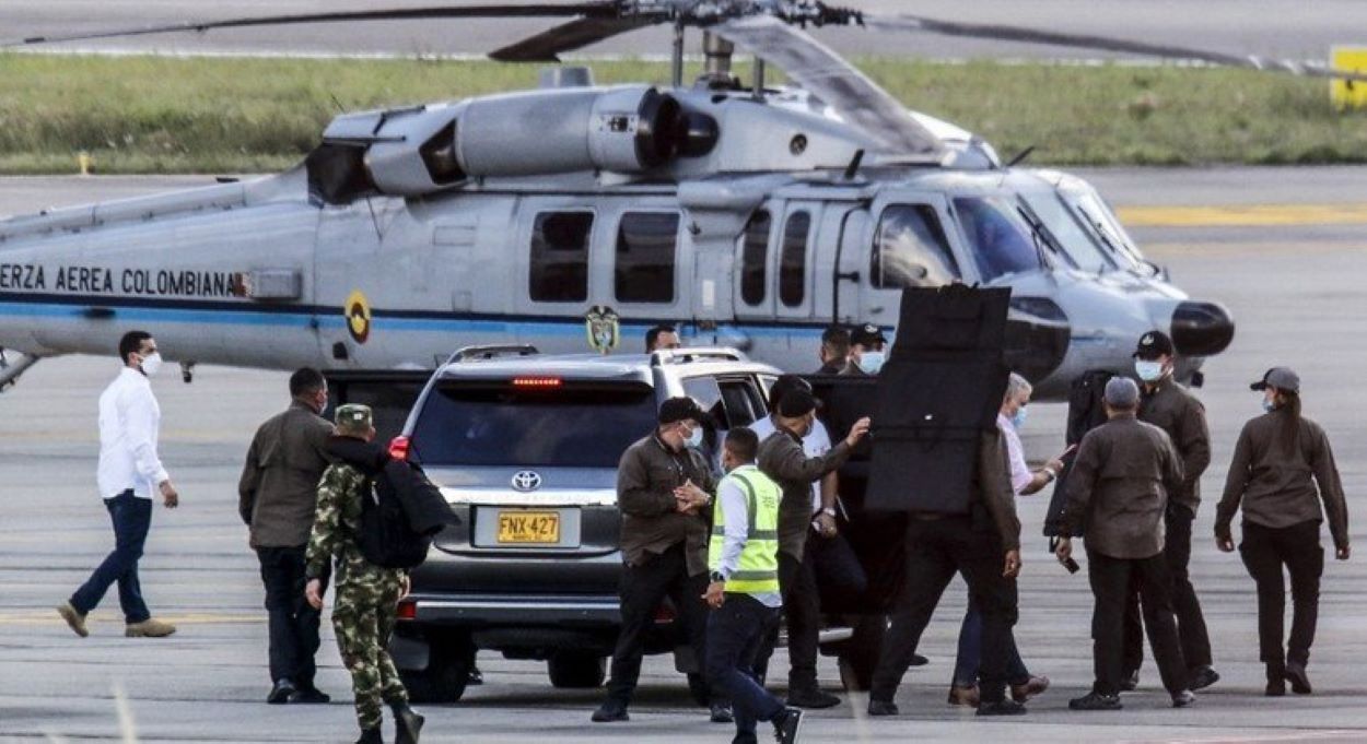 O helicóptero militar que levava o presidente da Colômbia, Iván Duque, foi alvejado por disparos ontem (25), na região de Cúcuta, informaram autoridades de Bogotá. Na aeronave, um modelo norte-americano Black Hawk, viajavam também o ministro da Defesa, Diego Molano, do Interior, Daniel Palacios, e o governador do Norte de Santander, Silvano Serrano. Ninguém se feriu.