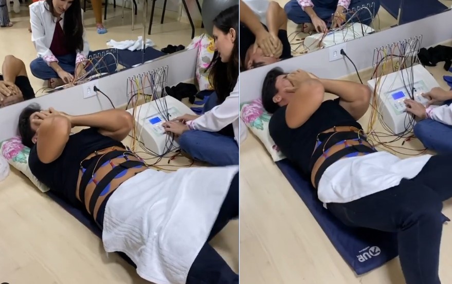 “Como seria se os homens entrassem em trabalho de parto? Hoje fizemos um curso de ‘preparação para o parto’ e no final teve uma simulação da dor das contrações que as mulheres sentem!”, explicou na legenda do vídeo (veja acima), que mostra o marido agonizando de dor com a simulação da tecnologia.