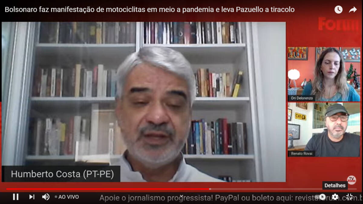 O senador Humberto Costa (PT-PE) afirmou nesta segunda-feira (24) no programa Onze e Meia, no canal da Fórum do YouTube, que ficou muito feliz com o encontro dos ex-presidentes Luiz Inácio Lula da Silva e Fernando Henrique Cardoso, na última quinta-feira, em São Paulo.
