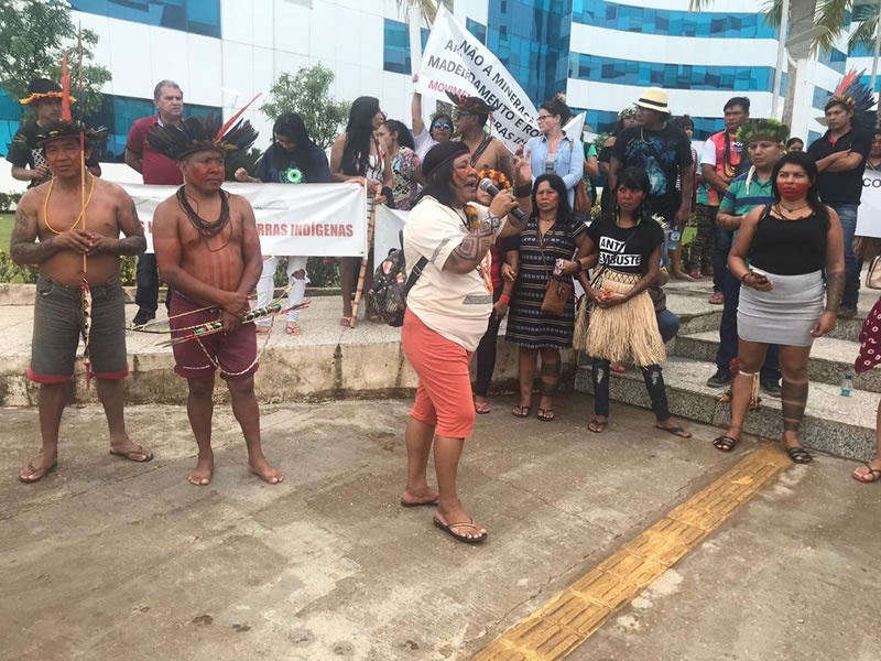 Também protestaram contra a falta de proteção nas terras indígenas. “Nosso objetivo é chamar a atenção da sociedade brasileira, do Governo Federal, nesse retrocesso de direitos indígenas. Nós queremos que os nossos direitos, da Constituição de 88, sejam respeitados e cumpridos”, disse a conselheira da Associação das Guerreiras Indígenas de Rondônia, Eva Kanoé.
