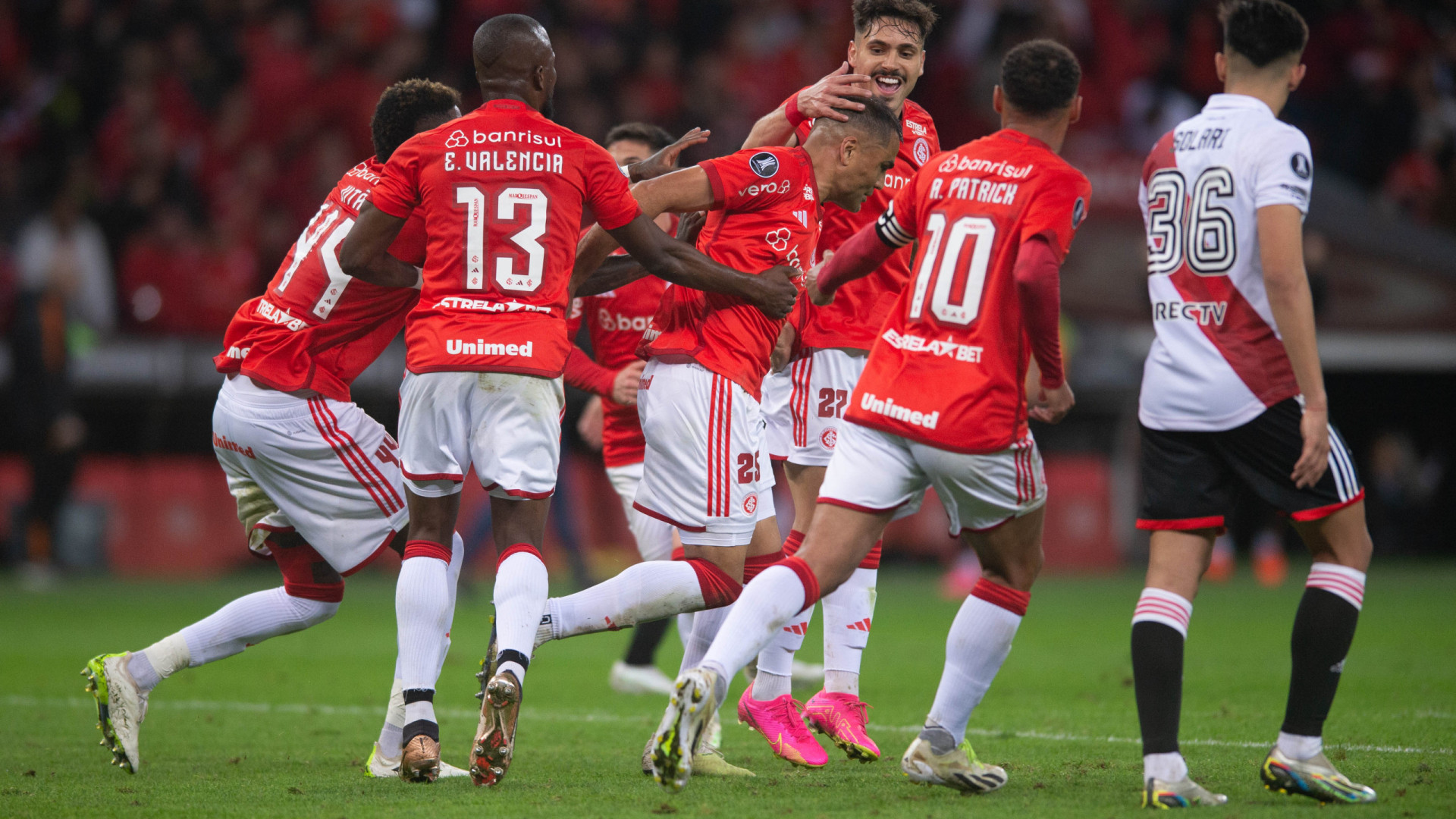 O Internacional venceu o River Plate duas vezes, nesta terça-feira, no Beira-Rio, em Porto Alegre, para alcançar as quartas de final da Copa Libertadores. O time do técnico Eduardo Coudet venceu no tempo normal por 2 a 1 e marcou 9 a 8 nos pênaltis. No jogo de ida, na Argentina, havia perdido por 2 a 1.