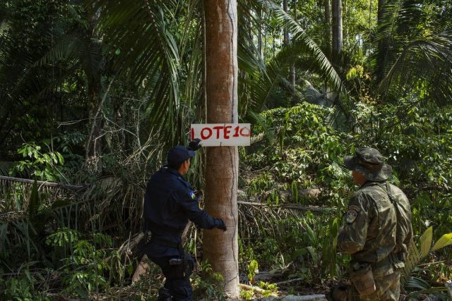 Na última terça-feira (22), uma equipe de fiscalização da Floresta Nacional Bom Futuro e policiais do Batalhão de Polícia Ambiental prenderam dois grileiros que realizavam a demarcação de lotes e a construção de barracos próximos à base da unidade de conservação, sem qualquer temor pelas forças de segurança presentes.