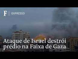 Um ataque aéreo israelense destruiu um prédio de 14 andares no centro da cidade de Gaza na noite de sábado, após um ataque surpresa do Hamas.