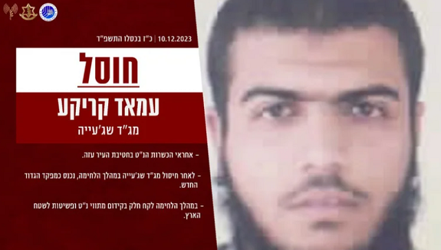 O exército israelense e o serviço de segurança Shin Bet mataram o novo comandante do batalhão Shujaiyeh do Hamas, Amad Krika, em um ataque aéreo.