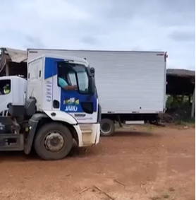 Jaru: Após denúncia da Vereadora Sol de Verão, caminhões da prefeitura de Jaru e da empresa RECICLANIP começaram a retirada de pneus armazenados incorretamente.