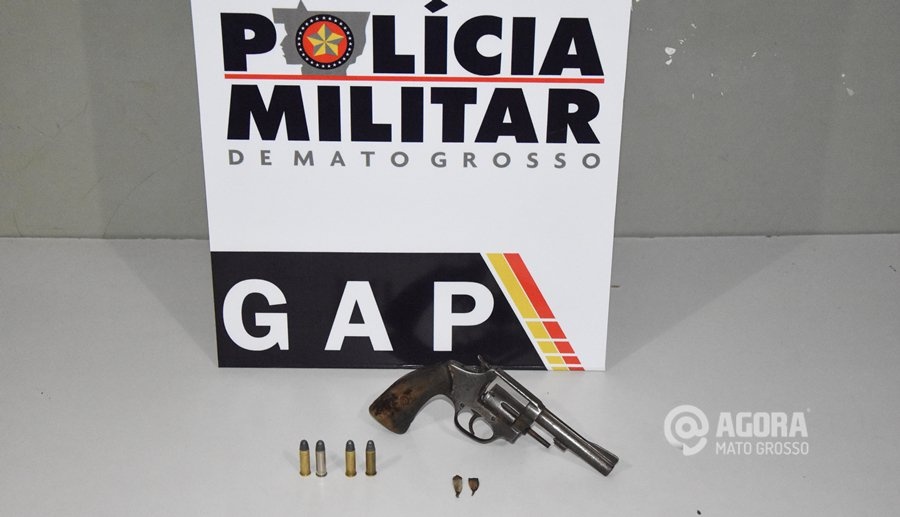 Durante buscas, os policiais encontraram um revolver calibre 38 com quatro munições intactas e dois cigarros de substância análoga a maconha.