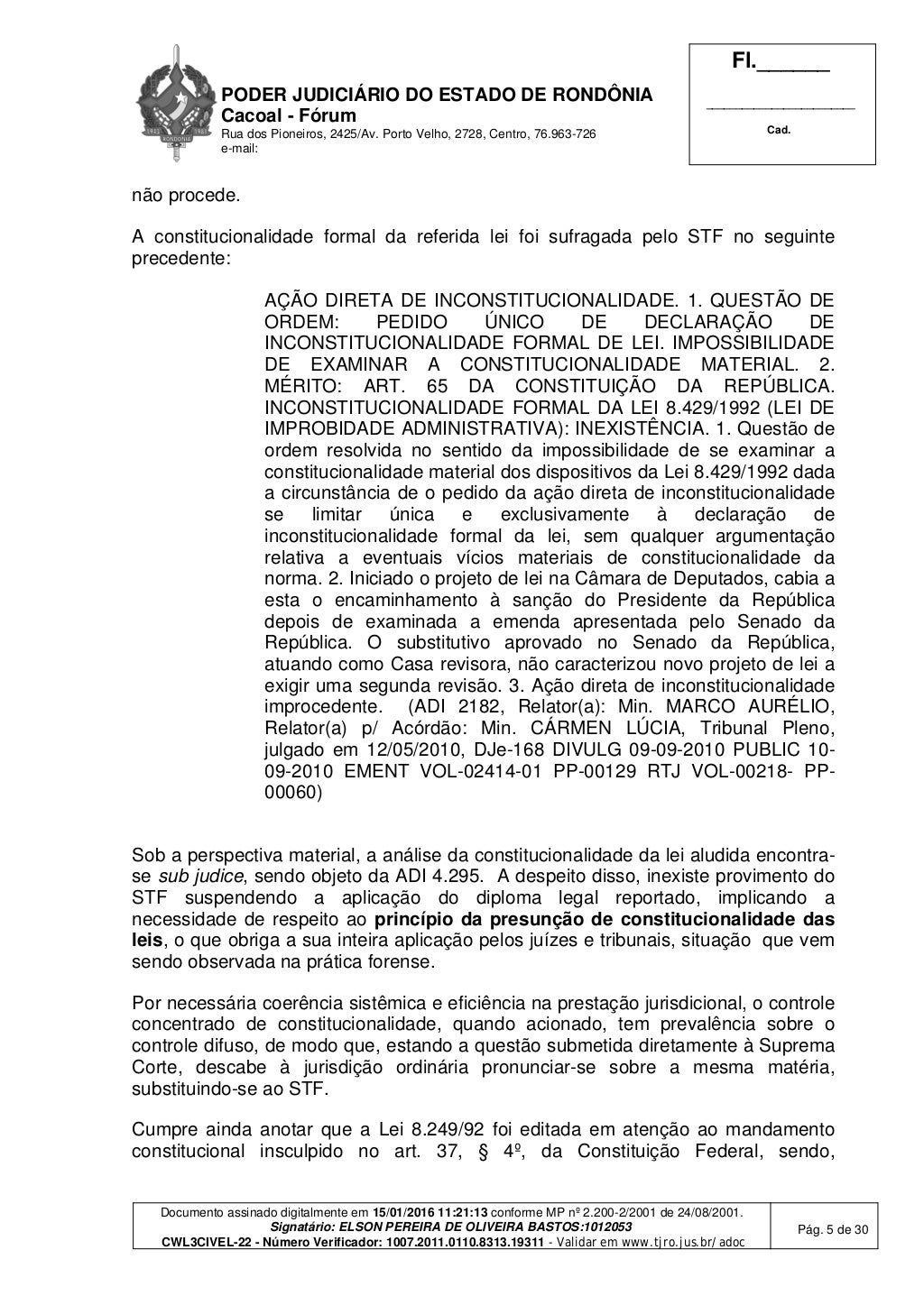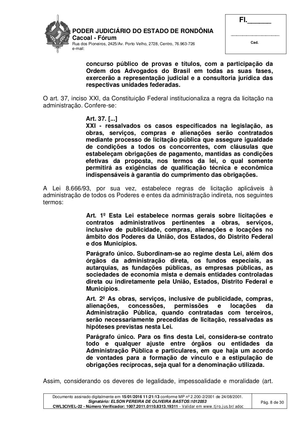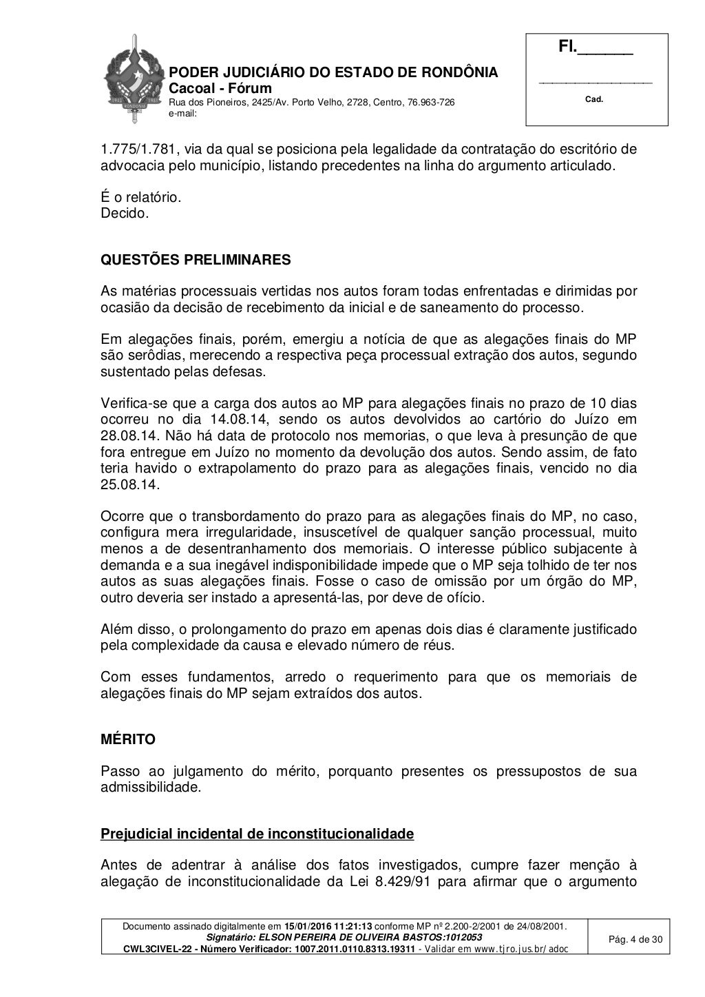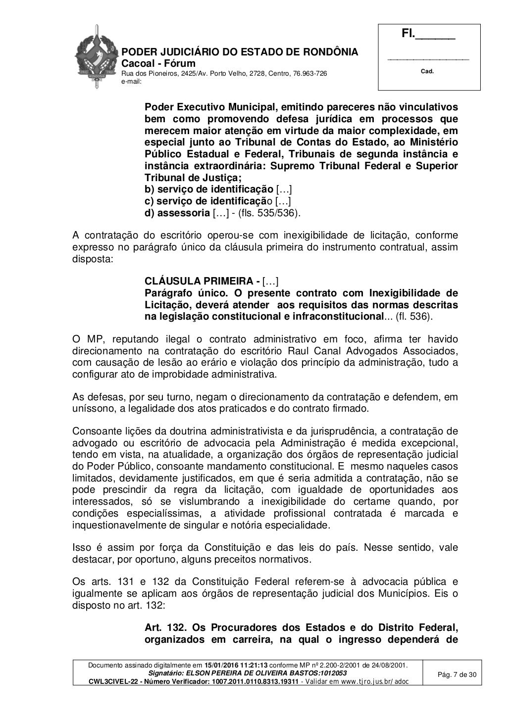 Porto Velho, RO — Em janeiro de 2016, o juiz de Direito Elson Pereira de Oliveira Bastos, da 3ª Vara Cível de Cacoal, condenou as seguintes pessoas pela suposta prática de improbidade administrativa: Francesco Vialetto, Edinaldo da Silva Lustoza, Maria Ivani de Araújo Sousa, Márcio Valério de Sousa e a empresa Raul Canal & Advogados Associados S/S.