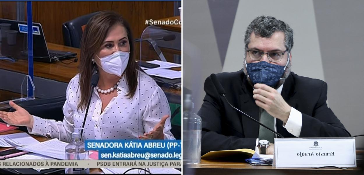 247 - A senadora Kátia Abreu (PP-TO) enquadrou o ex-ministro das Relações Exteriores Ernesto Araújo, que mentiu nesta terça-feira (18) em depoimento na CPI da Covid ao negar conflitos diplomáticos com a China. Segundo a parlamentar, a gestão de Araújo foi uma "bússola que nos levou para o naufrágio da política internacional".