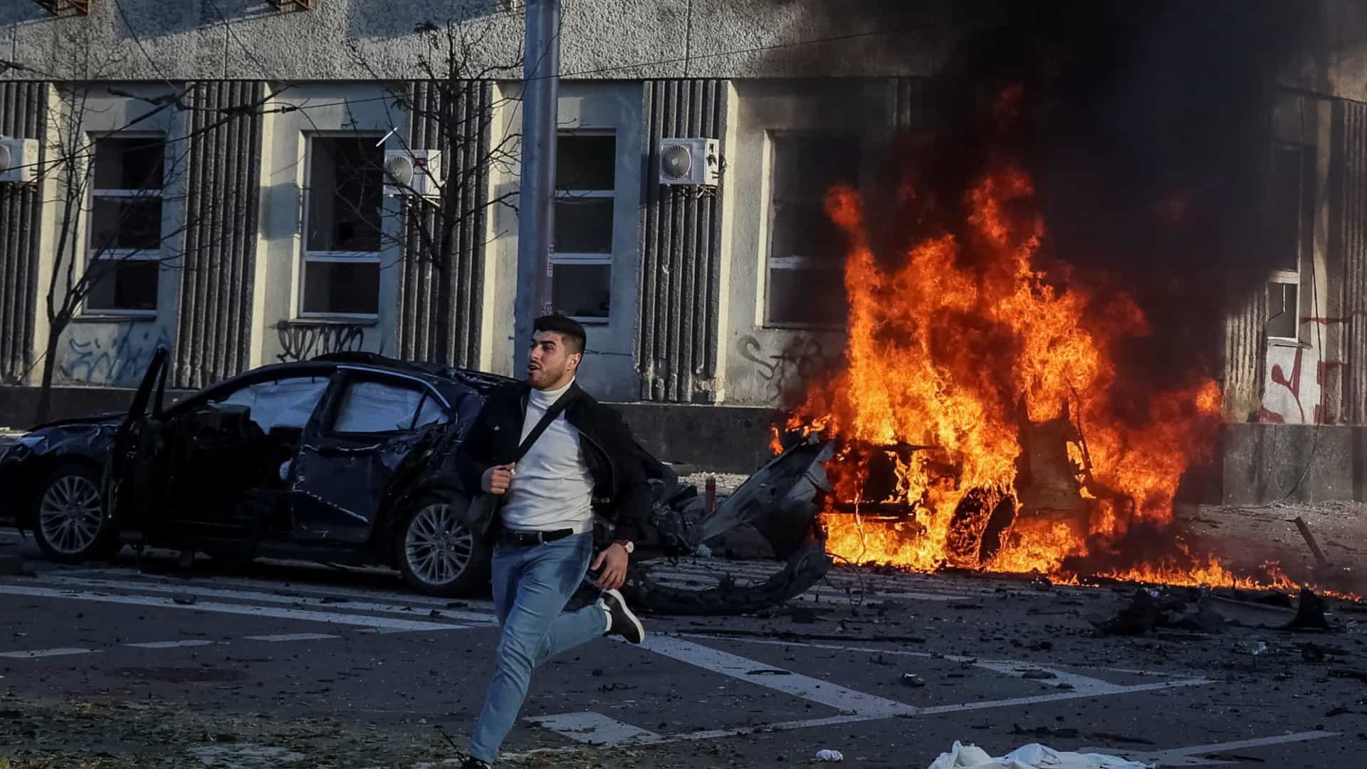 Kyiv sob ataque. Fumo e chamas no centro da capital da Ucrânia