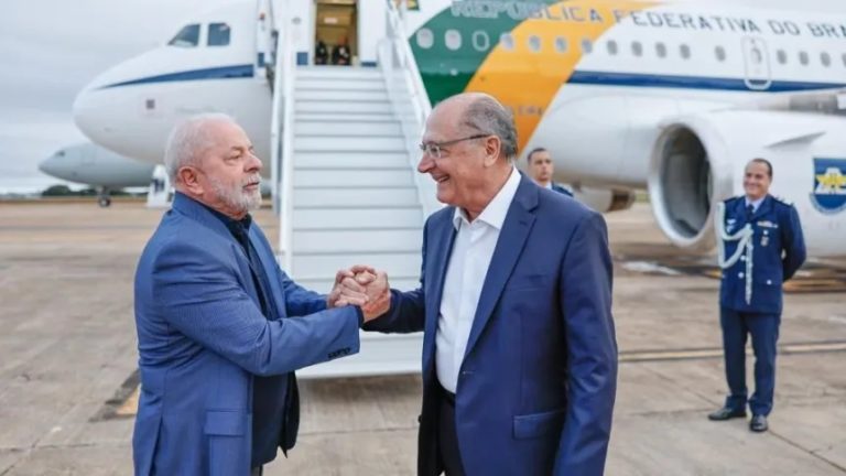 Antes de embarcar, foram registradas algumas fotos entre Lula e o vice-presidente Geraldo Alckmin, que assume como presidente em exercício na ausência do petista.